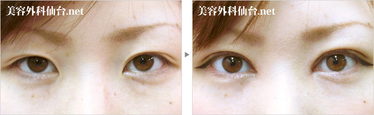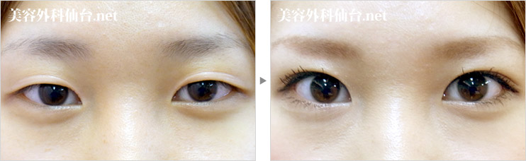 症例経過:目が小さく離れているのを気にしていた症例です。モデルさんのようなパッチリした目を希望して御相談頂きました。目の上下幅が細い上に、蒙古襞が内眼角に発達して目の横幅が狭く、目が離れて見えました。二重切開法と目頭切開を併用して目の上下幅、横幅を広げることで、モデルさんのようなパッチリ目になると考えられました。手術後は大きく目が開いて、化粧をしなくとも目が大きくなったと実感できるようになりました。