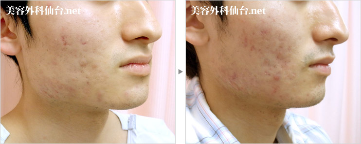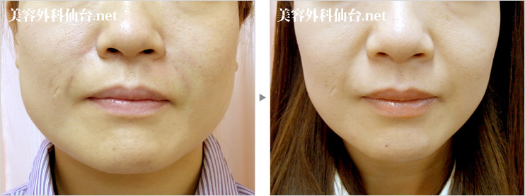 症例経過:エラが張っているために、顔が大きく威圧的に見えるということが嫌で御相談いただいた症例です。手軽なエラ小顔注射を希望されました。四角張った顔が、ほっそりと小さく、女性的になりました。