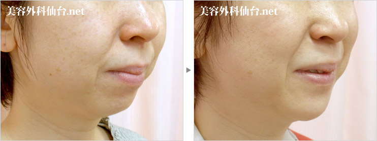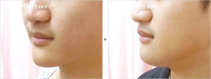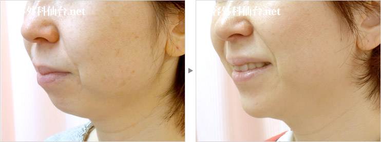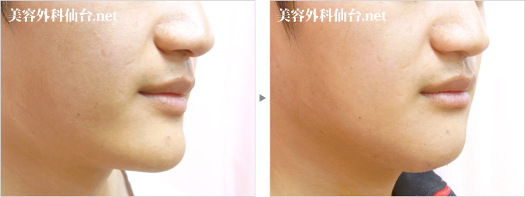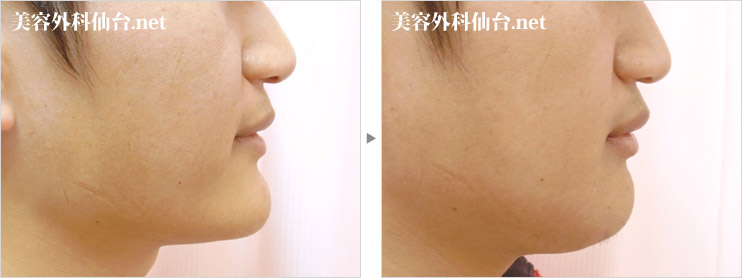 医療用プロテーゼを顎の先端に挿入して、顎を前に出す手術です。メスを使う手術ですが、一度行えば、永続的な効果が認められます。