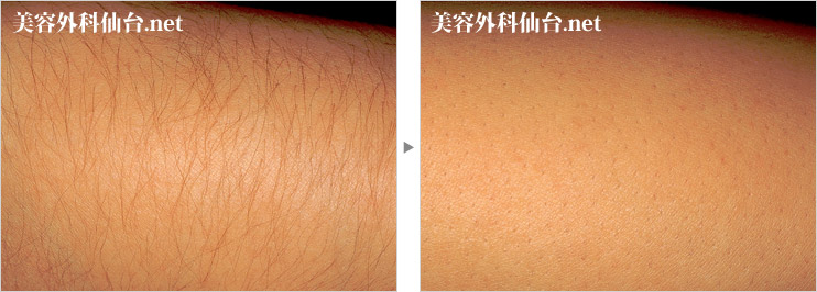 症例解説:夏になり腕を出す時期になると、腕のムダ毛が気になるという方から多数の御相談を頂いています。医療レーザー脱毛により、安全かつスピーディーに脱毛を行うことができます。脱毛処置が不要になり、半袖姿になることができます。医療レーザー脱毛は、安全性が高く副作用がほとんどないことが知られていますが、稀に照射部位に発赤、水泡、色素沈着を形成することがあるというリスクやデメリットがあります。照射前に十分説明を受けて、トラブルにならないよう注意してください。